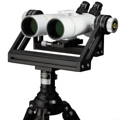 When using these large binoculars, a sturdy photo tripod with an appropriate load capacity is highly recommended. The connection is made via two 1/4 inch or one 3/8 inch threaded holes (standard photo tripod thread) in the tripod adapter of the binoculars. The ideal solution is to use the optional availlable EXPLORE SCIENTIFIC U-Mount with field tripod (item No. 01-14300). This is specially designed for the large binoculars of the BT series and carries these devices absolutely safely. The excellent mechanism with adjustable friction in both axis allows easy moving and tracking. The binocular position is kept stable depending on the adjusted friction intensity. Vibrations are reduced to a minimum by the massive construction of the U-Mount and the large stainless steel tripod. Even at high magnification there are no vibrations and the finest details can be observed.