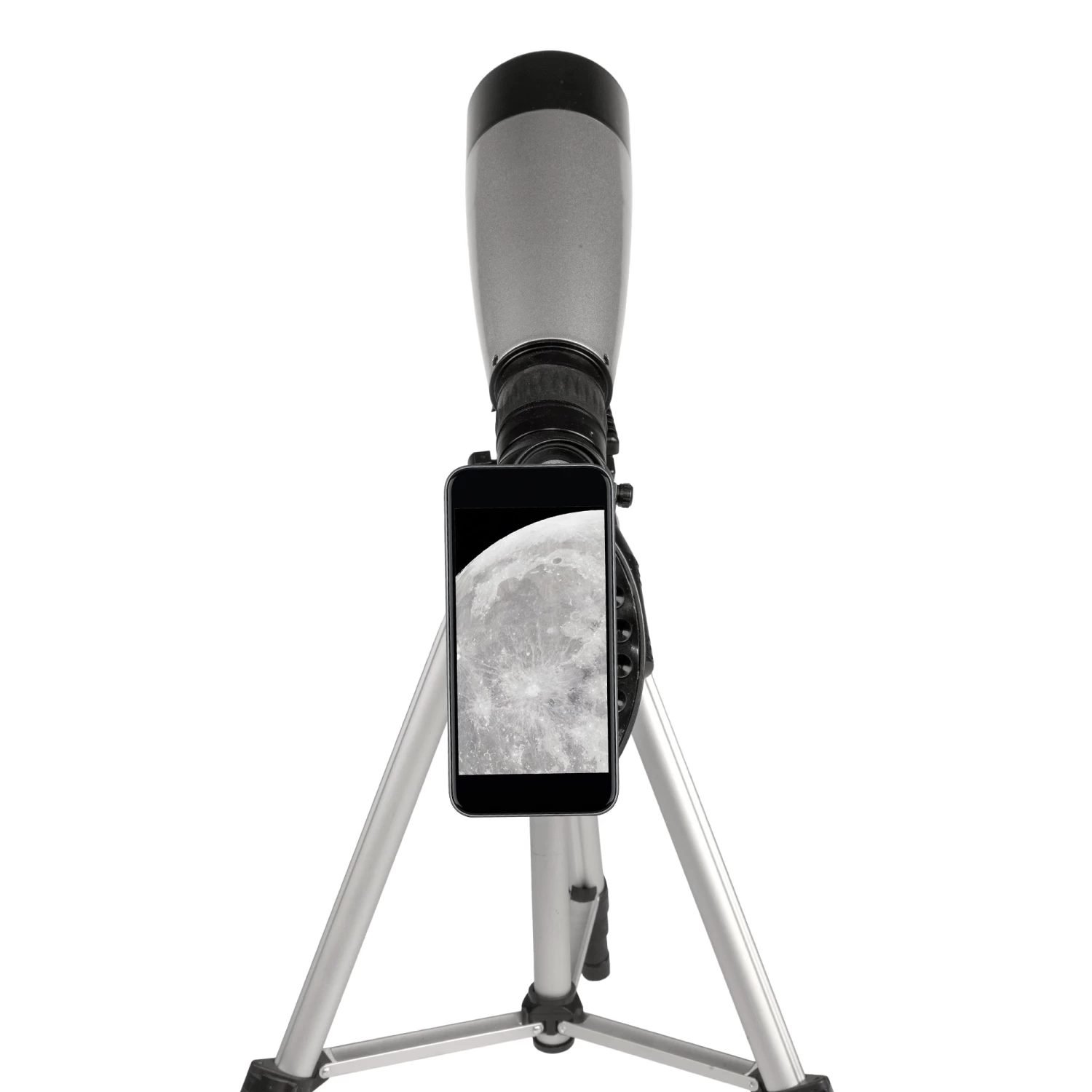 Explore the beauty of the lunar terrain, get to know our planetary neighbors or discover the brightest deep sky wonders with the Titan 70mm telescope. This versatile refractor comes with two eyepieces for magnifications of 18x and 60x and is outfitted with a fully rotatable diagonal that allows you to find the perfect viewing angle. The panhandle mount makes it easy to smoothly navigate the night sky and the smartphone adapter helps users capture the wonders in the eyepiece with their own smart device. A travel case is included for grab-and-go observation adventures.