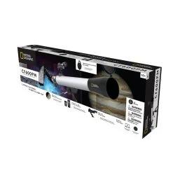 Explore the intricate contours of the lunar terrain or visit the brilliant blue-white stars of the Pleiades Cluster with the National Geographic CF600 Telescope. This entry-level observation instrument is an ideal choice for those wanting to begin their journey into the world of amateur astronomy. This easy-to-use telescope has an aperture of 50mm, a 600mm focal length and unique carbon fiber styling. It comes with a simple alt-azimuth mount and tripod that allow the user to smoothly move the scope up, down and side to side. Additional components include two eyepieces to allow for varied levels of magnification, a red dot finder to assist with locating objects, astronomy software and a star map.