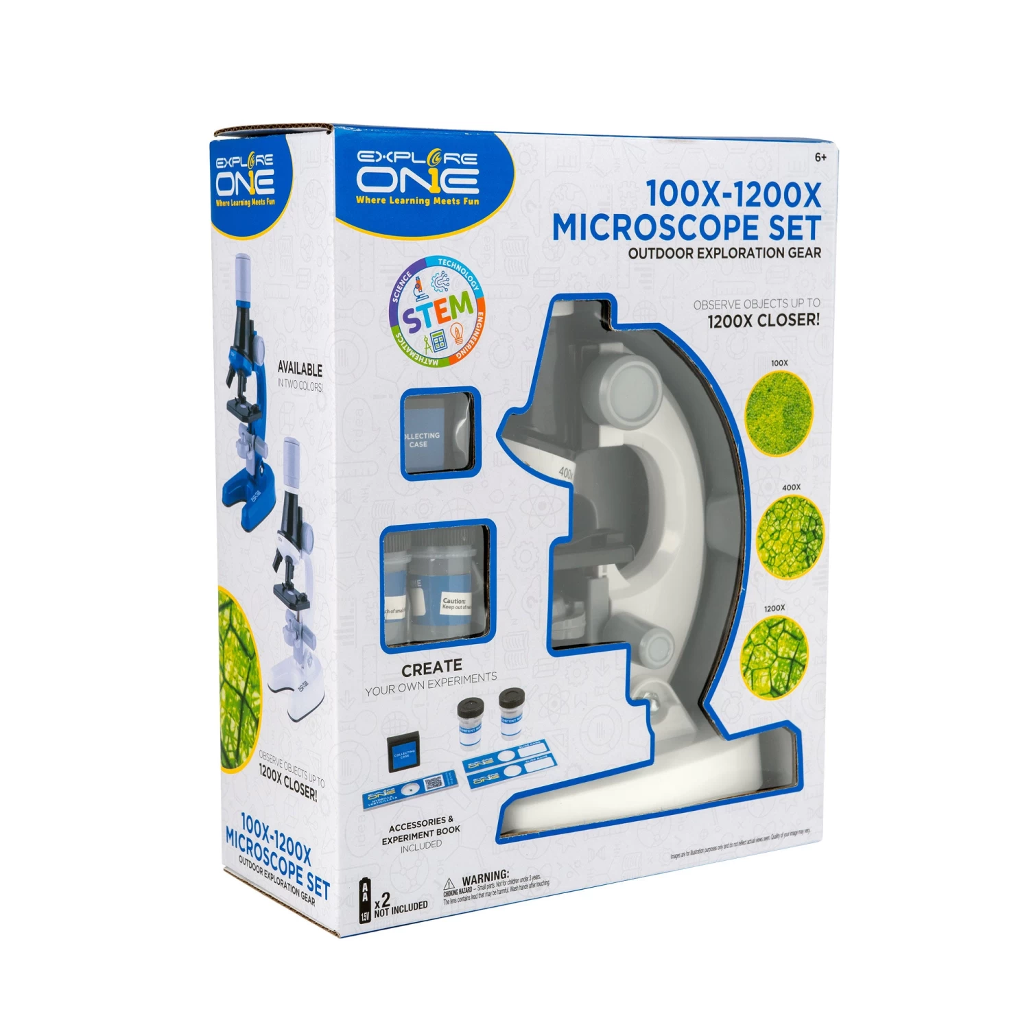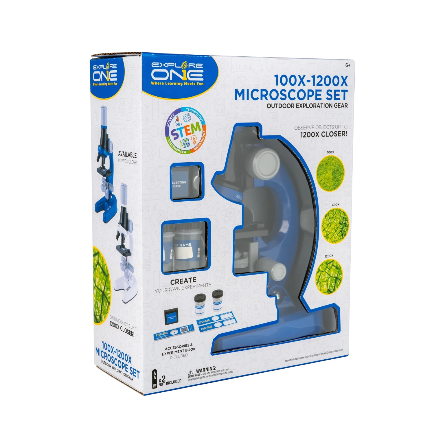 Dive into the world of microscopy and discover amazing details in the world around with this easy-to-operate microscope from Explore One. Outfitted with a 10x and 20x zoom eyepiece and three objective lenses, this microscope allows junior explorers to study specimens at magnification powers of 100x, 200x, 400x, 600x, 800x and 1200x.