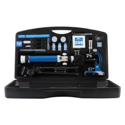 The Explore One Apollo Telescope/Microscope set is an ideal choice for young scientists looking to explore everything from the soil to the stars. This set opens up a full range of discovery options by including a 40mm telescope, a 900x microscope and an assortment of accessories. The easy-to-use refractor telescope comes with two eyepieces and a tabletop tripod. A star map and astronomy software are included to help observers navigate the night sky. The microscope has three levels of magnification and is equipped with slide trays, lab tools and collection materials to encourage experimentation.