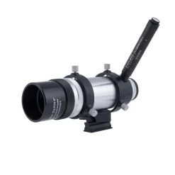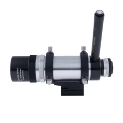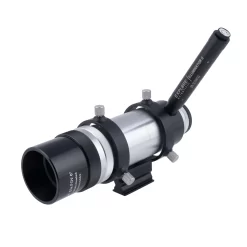 The Explore Scientific 8×50 produces a wide 6ยฐ field of view and allows precision focus of both main objective and eyepiece illuminated reticle. This finder now includes the NEW long battery life Illuminator II. A precision polished roof prism produces images that are right-side-up, left-to-right correct. In other words, things are not upside-down and backwards like most viewfinders. Our illuminated reticle is truly designed for finding objects with its open center (so you donโt mask the object you are centering with cross hairs) and scale markings for 1.5ยฐ, 3ยฐ, and 4.5ยฐ (the edge of the field of view is the 6ยฐ boundary). The 55ยฐ apparent field, 16mm long eye-relief eyepiece produces a bright 7mm exit pupil and will allow you to find faint galaxies, comets, and nebulae. All optics are EMD Coated to ensure maximum contrast. The illuminated reticle of the 8×50 Viewfinder with its scale markings and open center not only helps you center objects precisely, but gives a reference of the exact field of view in degrees. The deep red illumination is continuously variable to provide the desired brightness. Many customers tell us it is the best viewfinder/finderscope they have ever used on their telescopes.