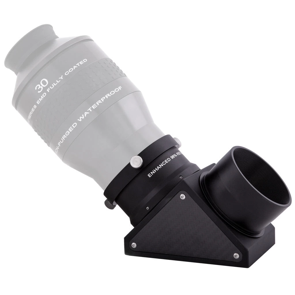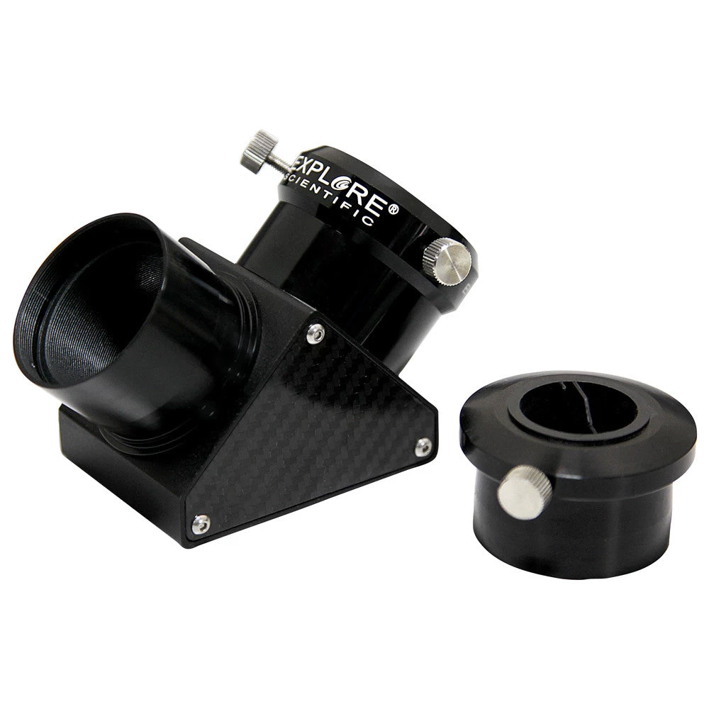 The Explore Scientific 2-inch Dielectric-Coated Diagonal Mirror comes complete with 1.25-inch Adapter and dust covers. Solid construction and light weight, this first surface coated diagonal mirror reflects 99% of the light to help maintain the brightest possible image from your telescope.