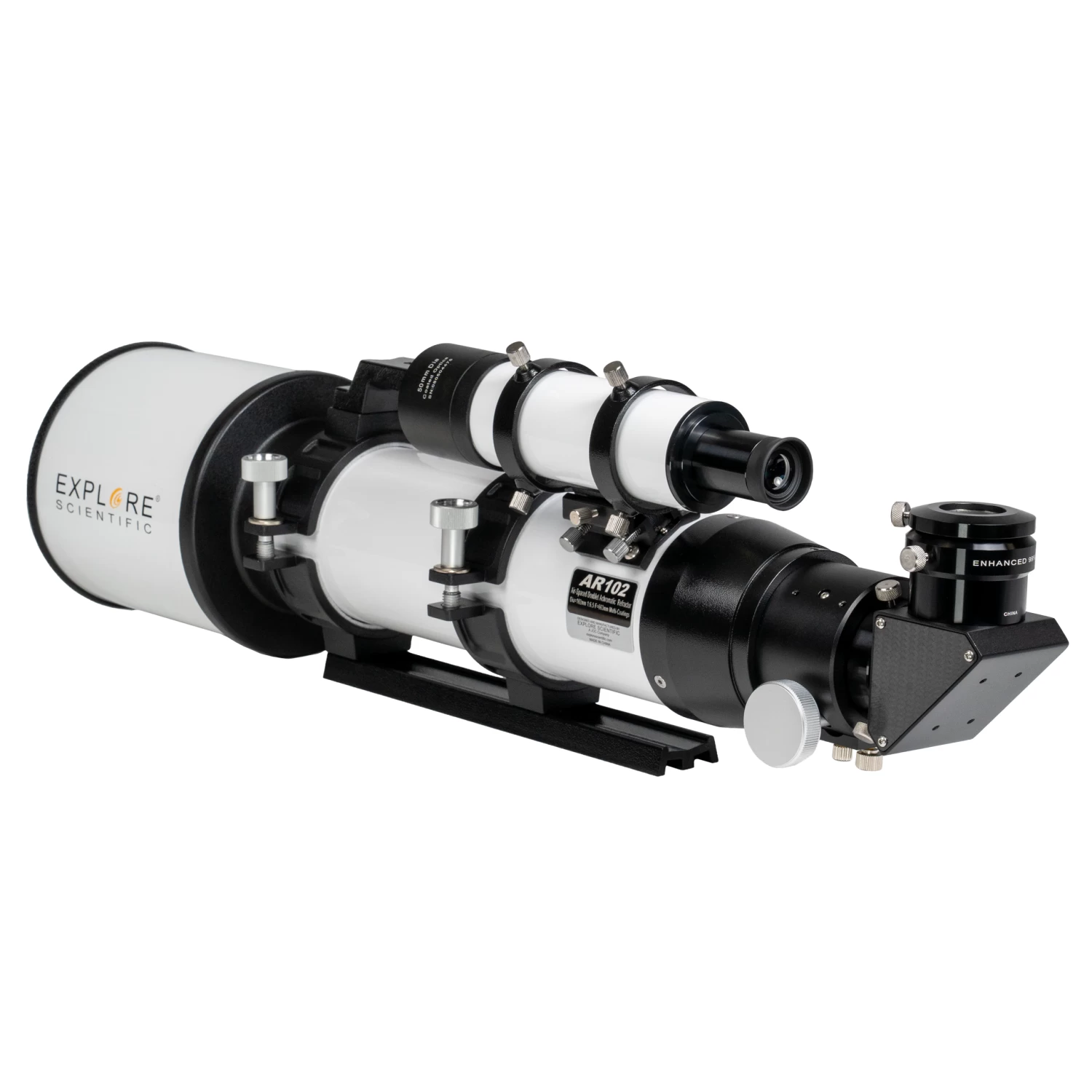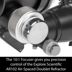 Designed to handle the rigors of public star parties and educational outreach, the Explore Scientific AR Series telescopes come with heavy-duty, high quality components, including a 2-inch Two-Speed Crayford Focuser with Compression , a 99% Reflective Dielectric-Coated 2-inch Diagonal Mirror with 1.25-inch Eyepiece Adapter, the Explore Scientific