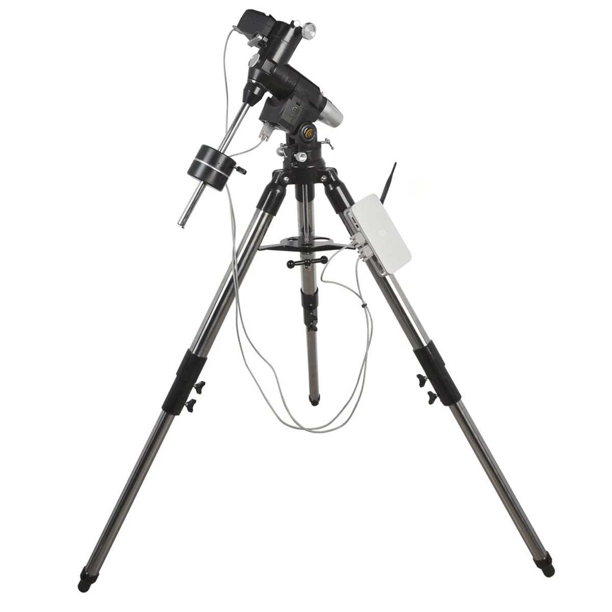 Explore Scientific’s PMC-Eight GOTO system can be controlled wirelessly or wired with a tablet or PC, with Windows 8.1 or 10, Android, Amazon Fire, or iOS, with a free app called ExploreStars. Tablet must be purchased separately.