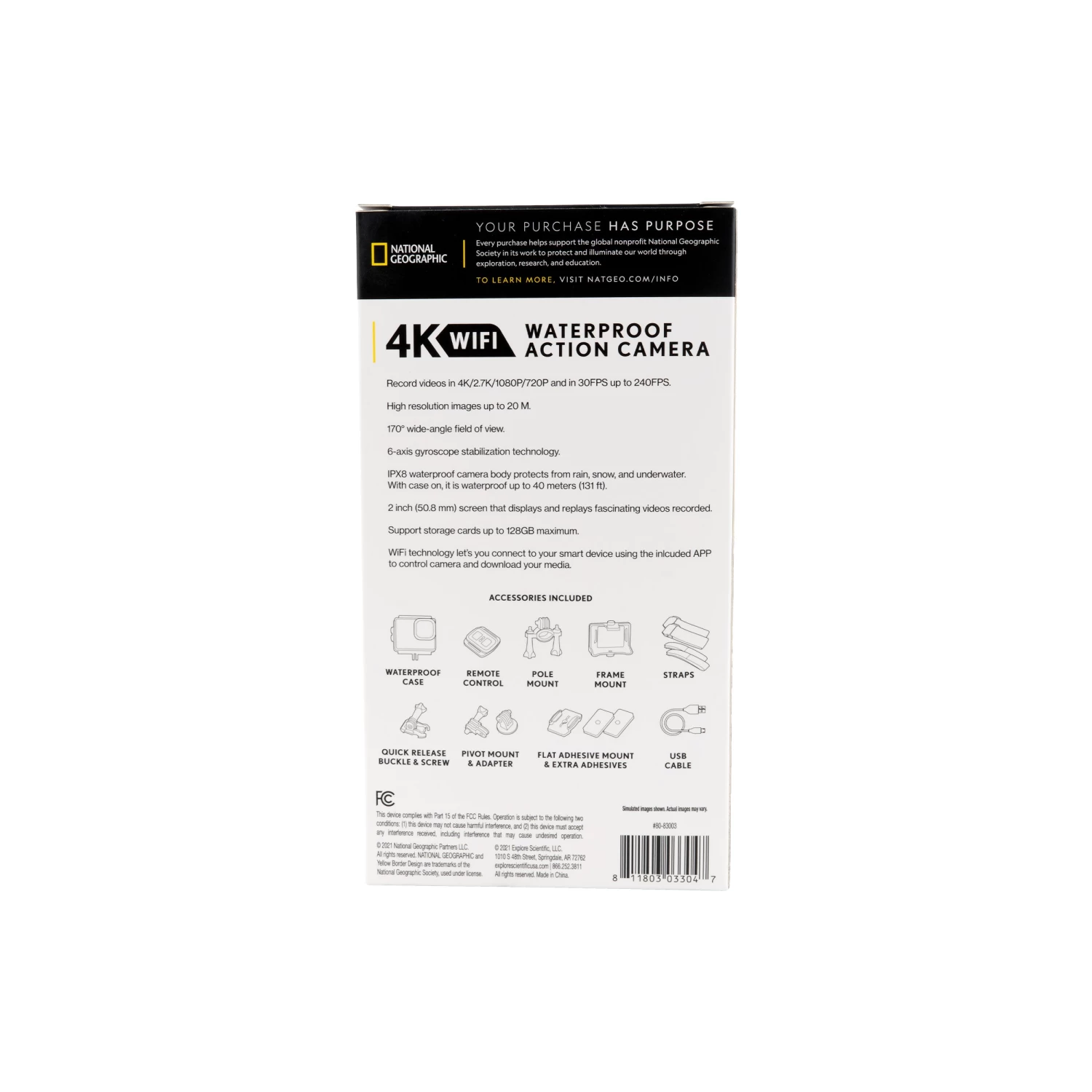 With its waterproof casing, multiple mounting accessories, 6-axis stabilization unit and wide 170° field of view, the National Geographic 4K WiFi Waterproof Action Camera has everything you need to capture the extremes of all of your outdoor adventures in ultra-high definition.