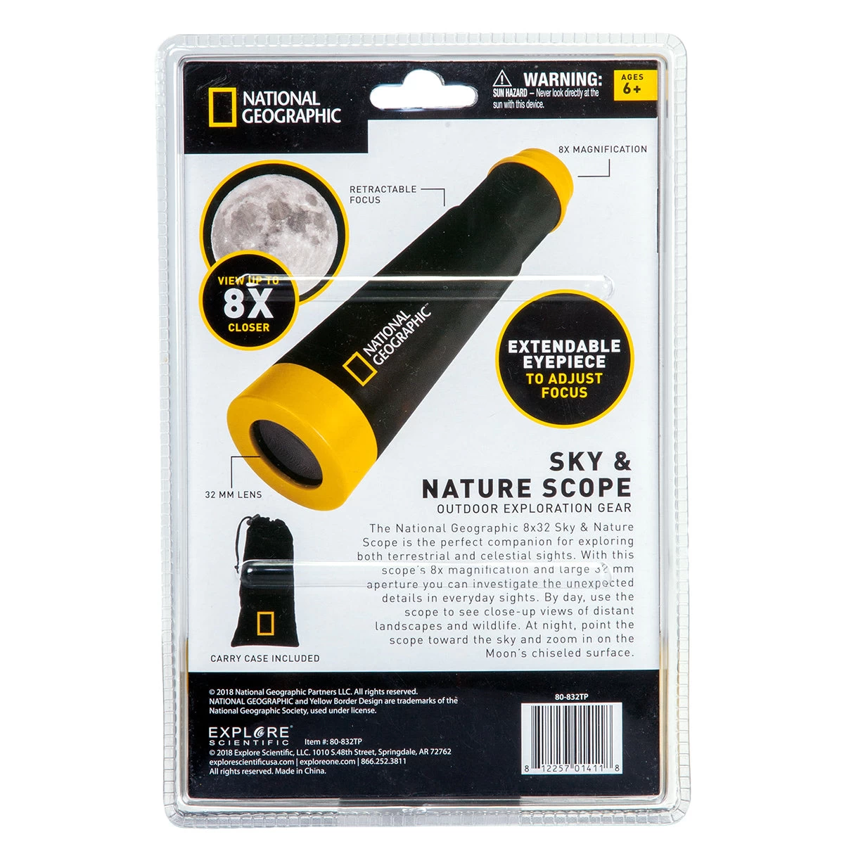 The National Geographic 8×32 Sky & Nature Scope is the perfect companion for exploring both terrestrial and celestial sights. With this scope’s 8x magnification and large 32mm aperture you can investigate the unexpected details in everyday sights. By day, use the scope to see close-up views of distant landscapes and wildlife. At night, point the scope toward the sky and zoom in on the Moon’s chiseled surface.