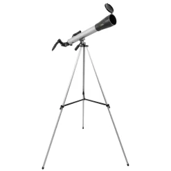Designed with emerging astronomers in mind, the set’s classic refractor telescope has a 50mm aperture that can reveal the Moon’s cratered surface as well as intriguing planetary features like Jupiter’s Galilean moons or Saturn’s rings. Two interchangeable eyepieces allow users to experiment with two different magnifications of 30x and 48x. Additional accessories include a panhandle mount that is easy for small hands to control, a full size tripod and a red dot finder for navigating the night sky.